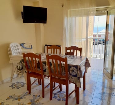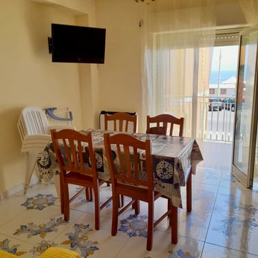 Accogliente appartamento al primo piano affacciato sulla splendida spiaggia di Patti Marina, con vista sulle Isole Eolie. La casa offre spazi luminosi e due balconi con vista mare, ideali per godersi la brezza marina e rilassarsi dopo una giornata in spiaggia.